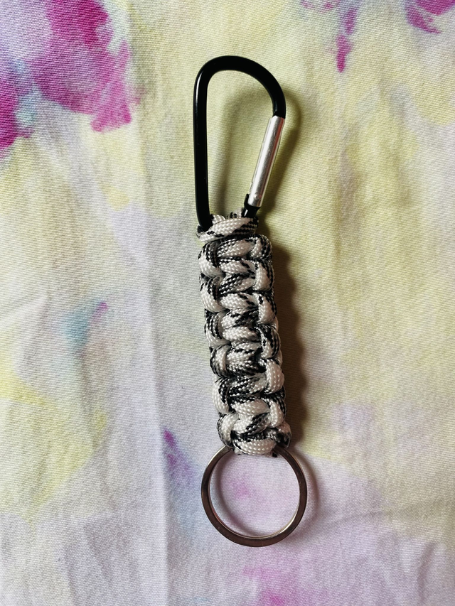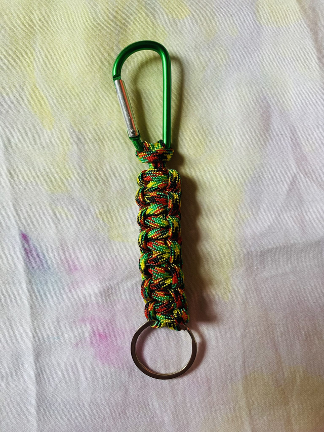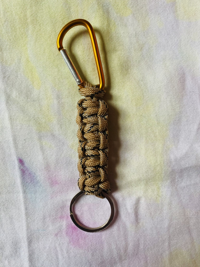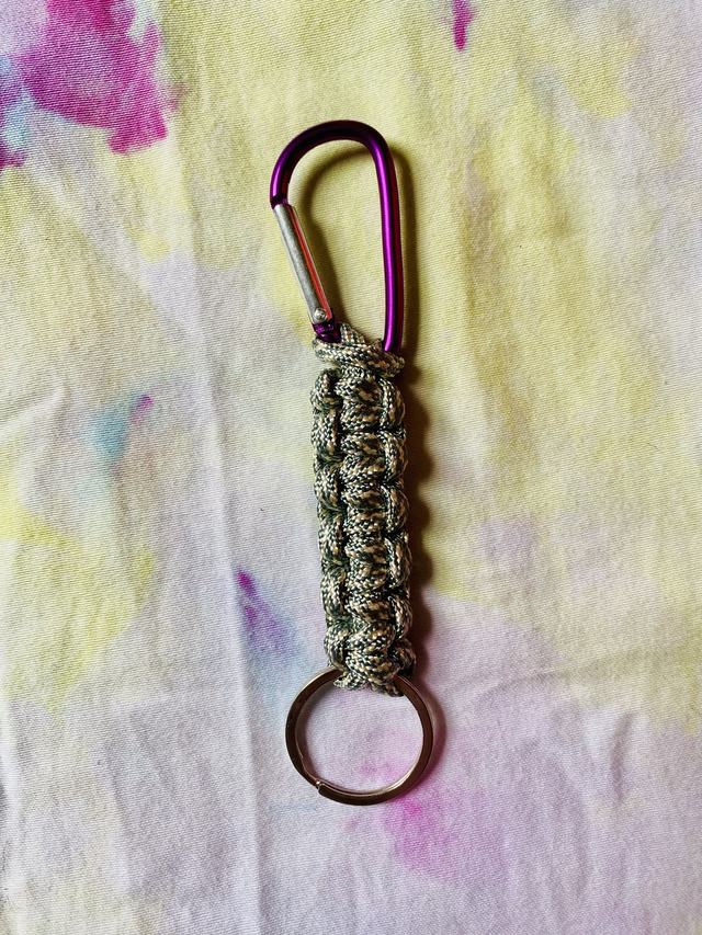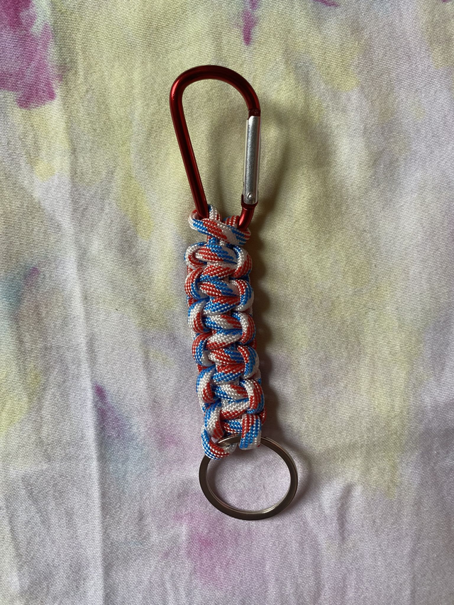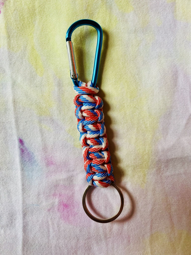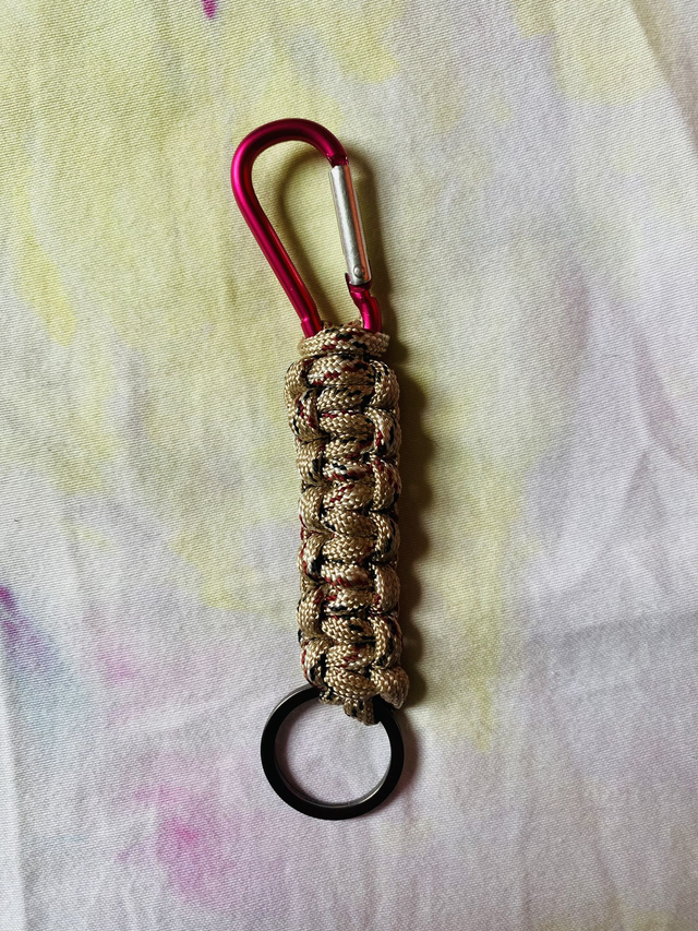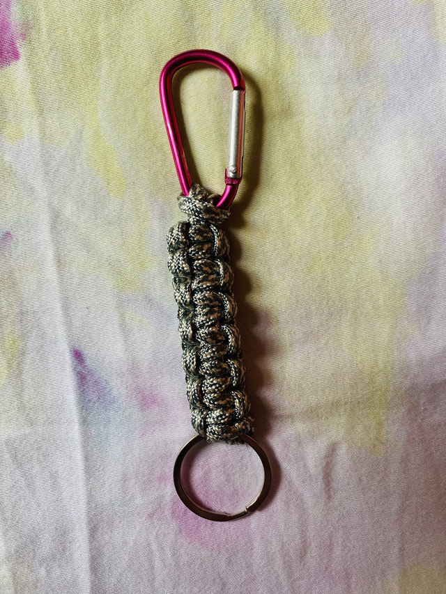 Where would lesbians be without the humble carabiner keyring? Made from nylon paracord by the author's fair hands this is a cute accessory to show off not just how gay you are but that you always know where you're keys are at.